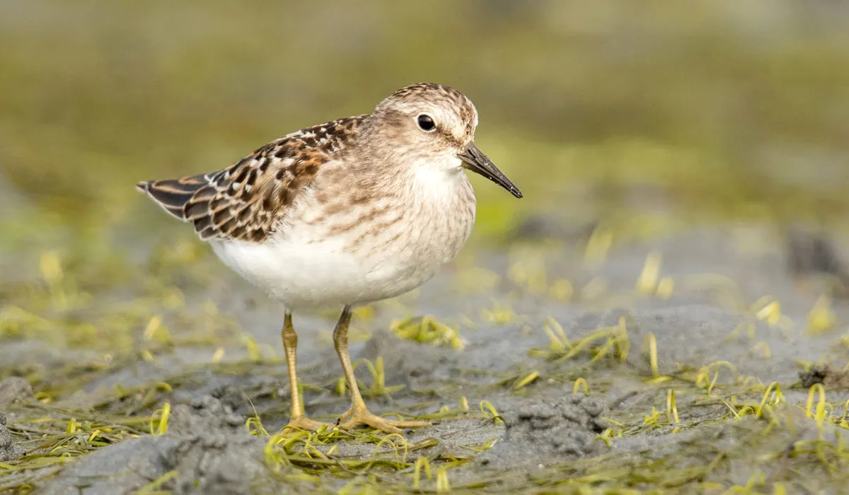 Le bécasseau minuscule se nourrit d'insectes aquatiques, de petits crustacés, de mollusques et de vers.