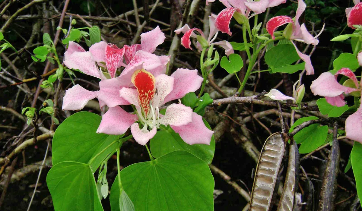 Chez nous, de nombreuses variétés sont présentes, telle que que le Bauhinia purpurea aux fleurs rouge pourpre et des gousses brun rouge, le Bauhinia variegata dont les fleurs sont blanc crème au rouge et violet, aux nervures plus foncées ou encore le Bauhinia x blakeana aux fleurs roses à rouge pourpre.